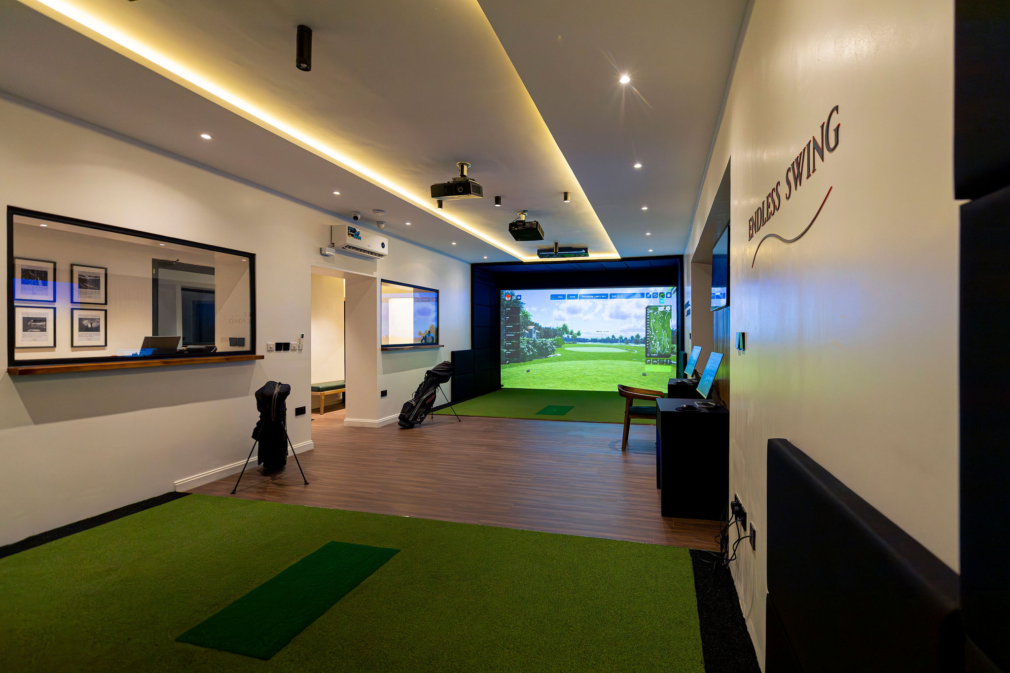Your premium golf experience in Kigali. Located on the rooftop of Simba Center, Birdie Lounge offers state-of-the-art golf simulators where you can play world-class courses, practice your swing, or enjoy a round with friends, all in a stylish and relaxed environment.